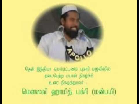 தமிழ் நாடு ஐக்கிய சமாதனப் பேரவையின் தலைவர் மௌலானா மௌலவி அல்ஹாஃபிழ் காரி ஹாமித் பக்ரி ஆலிம் மன்பயீ ஹஜ்ரத் அவர்களின் உரை.