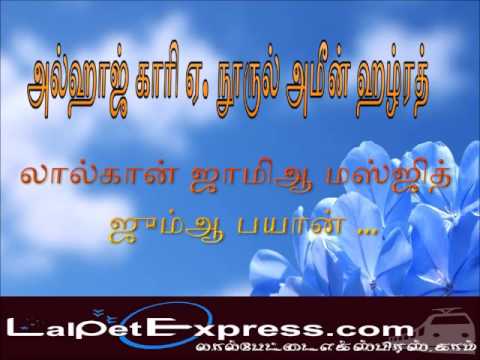 லால்பேட்டை ஜாமிஆ மன்பவுல் அன்வார் அரபுக் கல்லூரியின் முதல்வரும், கடலூர் மாவட்ட அரசு தலைமை காஜியுமான, மௌலானா மௌலவி அல்லாமா.அல்ஹாஃபிழ்,காரி ஏ.நூருல் அமீன் ஃபாஜில் மன்பயீ ஹஜ்ரத் கிப்லா அவர்களின் ஹிஜ்ரி 1435 வது ஆண்டின் இறுதி வார ஜும்ஆ பயான் …